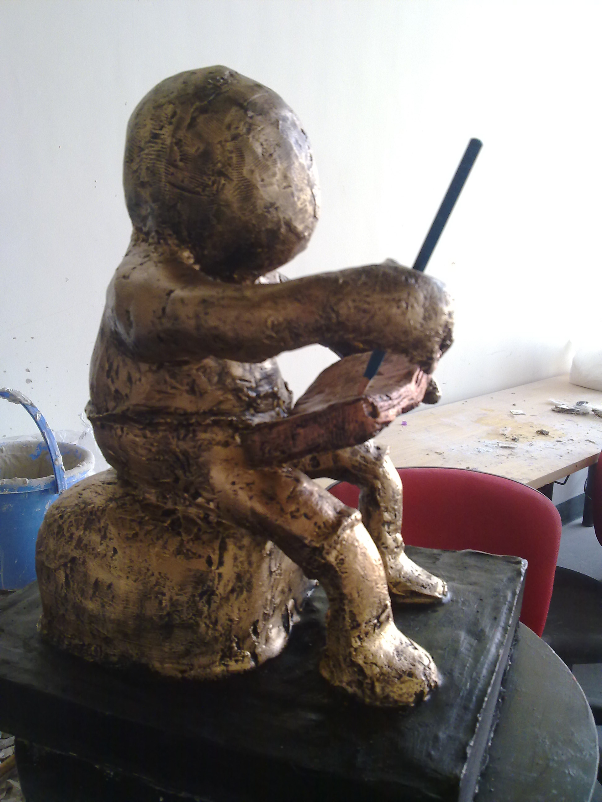 An experiment where a clay model was modeled, a mold of the model was created using plaster of paris and then finally fiber cast. The final fiber cast model was then painted using metallic paint.
